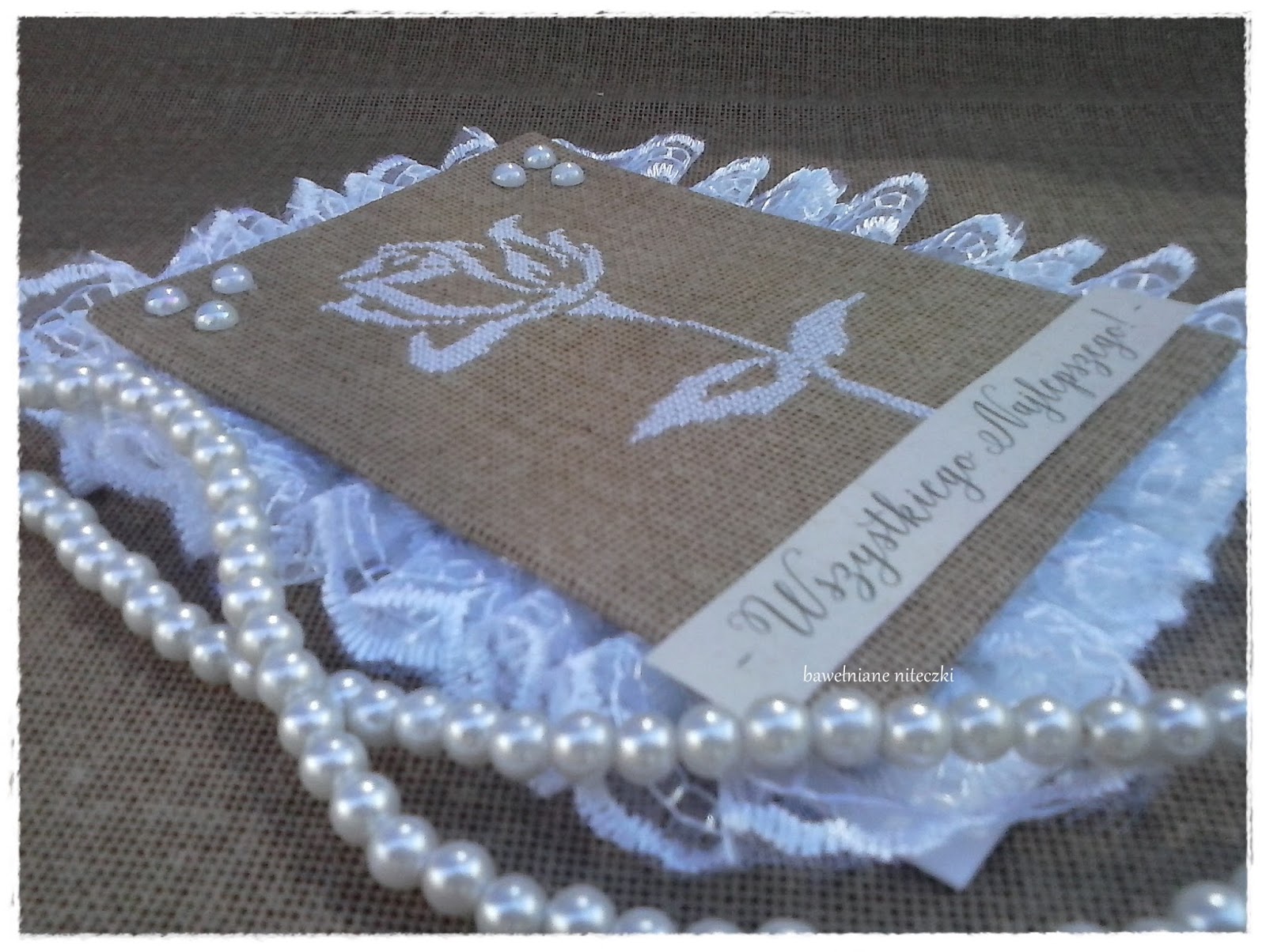 Kartka pięknie się prezentuje! Bardzo mi się podoba ta lniana surowość i koronkowe wykończenie :)